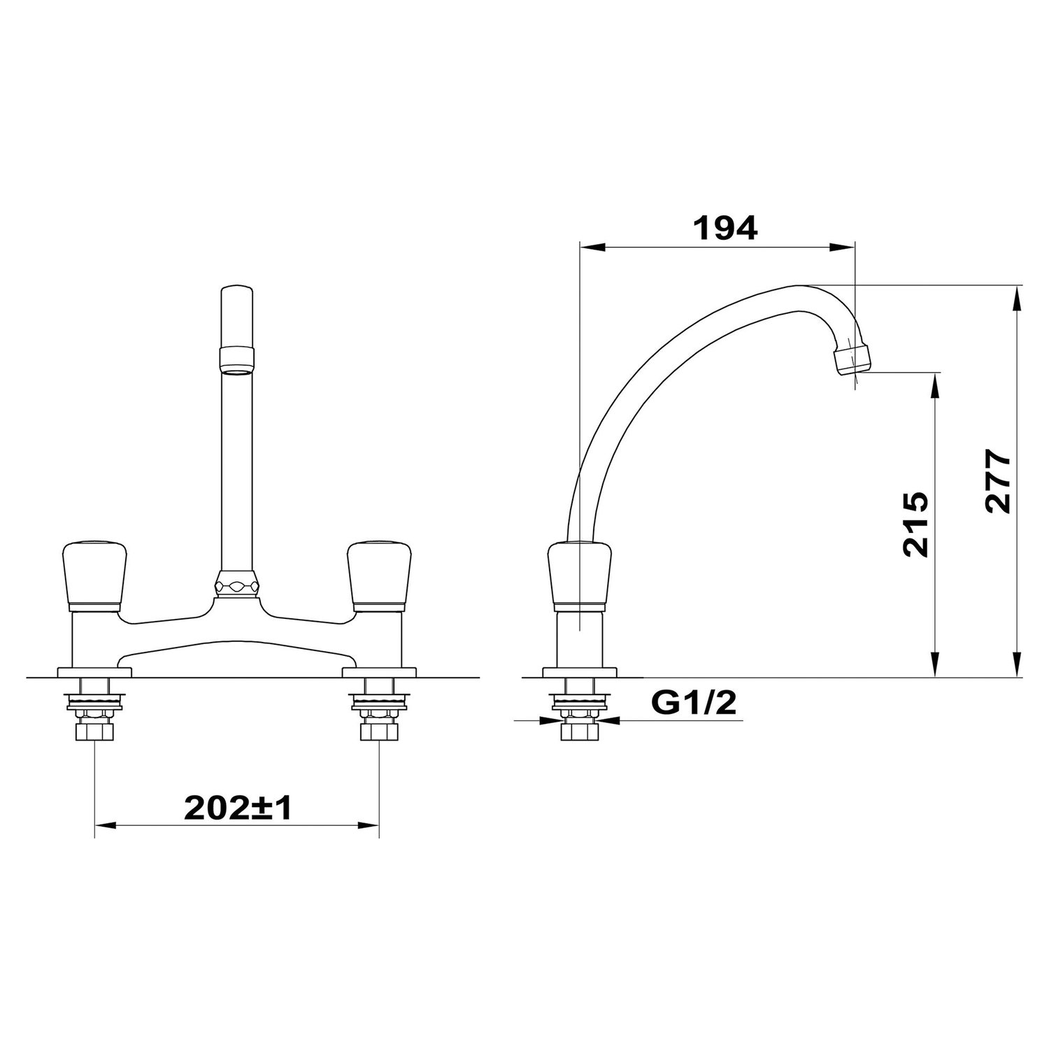 | Características | Cuello tipo J para mejor alcance al centro del lavaplatos, corte mediante vastago |