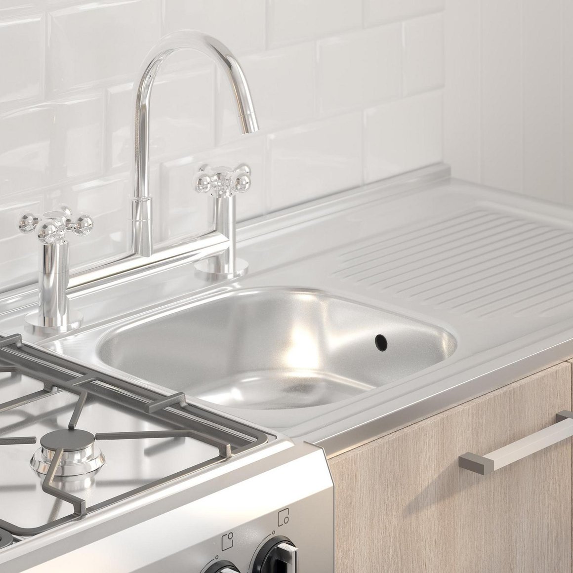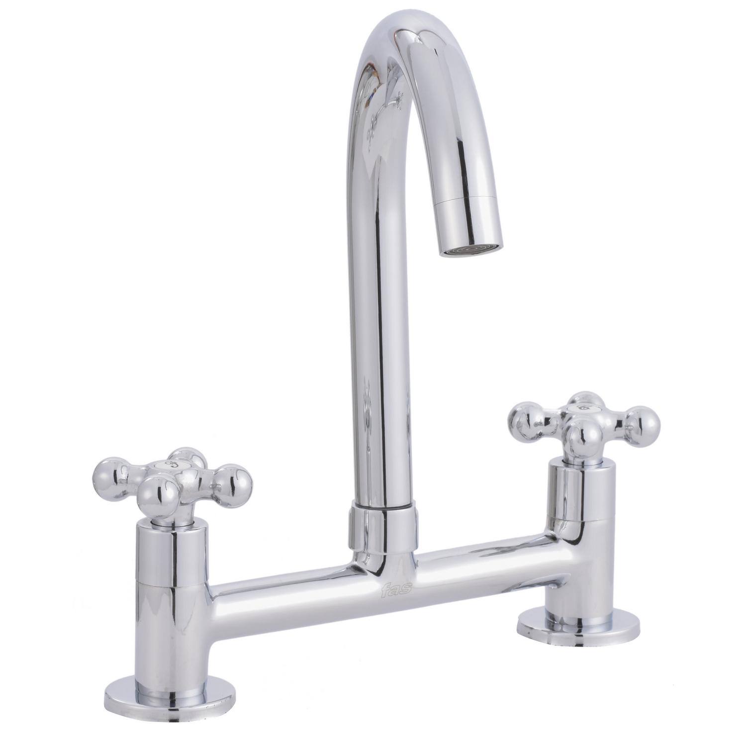 Dale un toque de elegancia clásica a tu cocina con la combinación para lavaplatos cromada de Fas. Su diseño vintage con manijas cruzadas y altura alta te permitirá lavar tus platos con mayor comodidad. Además, ¡ahorra agua mientras cuidas el medio ambiente!