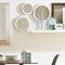 Set de 3 espejos redondo negro Homy Jugar con la decoración e implementar algunos elementos que le entreguen un estilo lúdico, lo puedes lograr con pequeños objetos, que llamarán la atención en tus ambientes y aportarán diversión al lugar que deseas decorar. Un ejemplo puede ser este set de espejos redondos , que te permitirá instalar, por ejemplo en la pared de un baño de visitas, en vez de un solo espejo, un juego que va desde el más grande al más pequeño, y que entregará un toque moderno y entretenido al lugar. Su color negro te permite combinarlo con muros de cerámica blanca o en tonos claros. Puedes instalarlos formando un triángulo o de mayor a menor tamaño en forma recta hacía al lado y perpendicular hacía abajo.