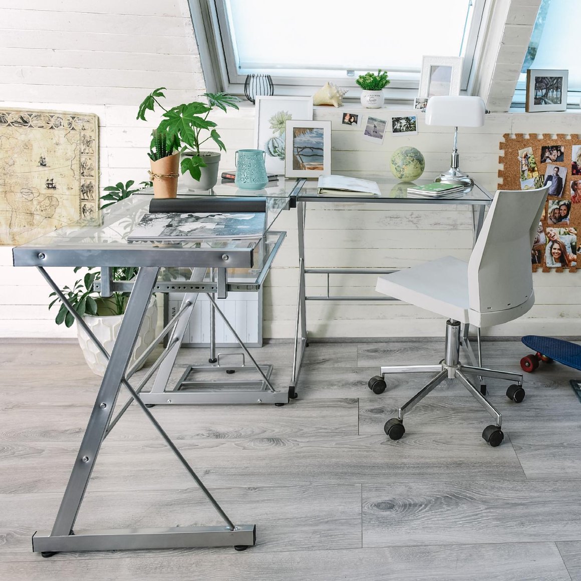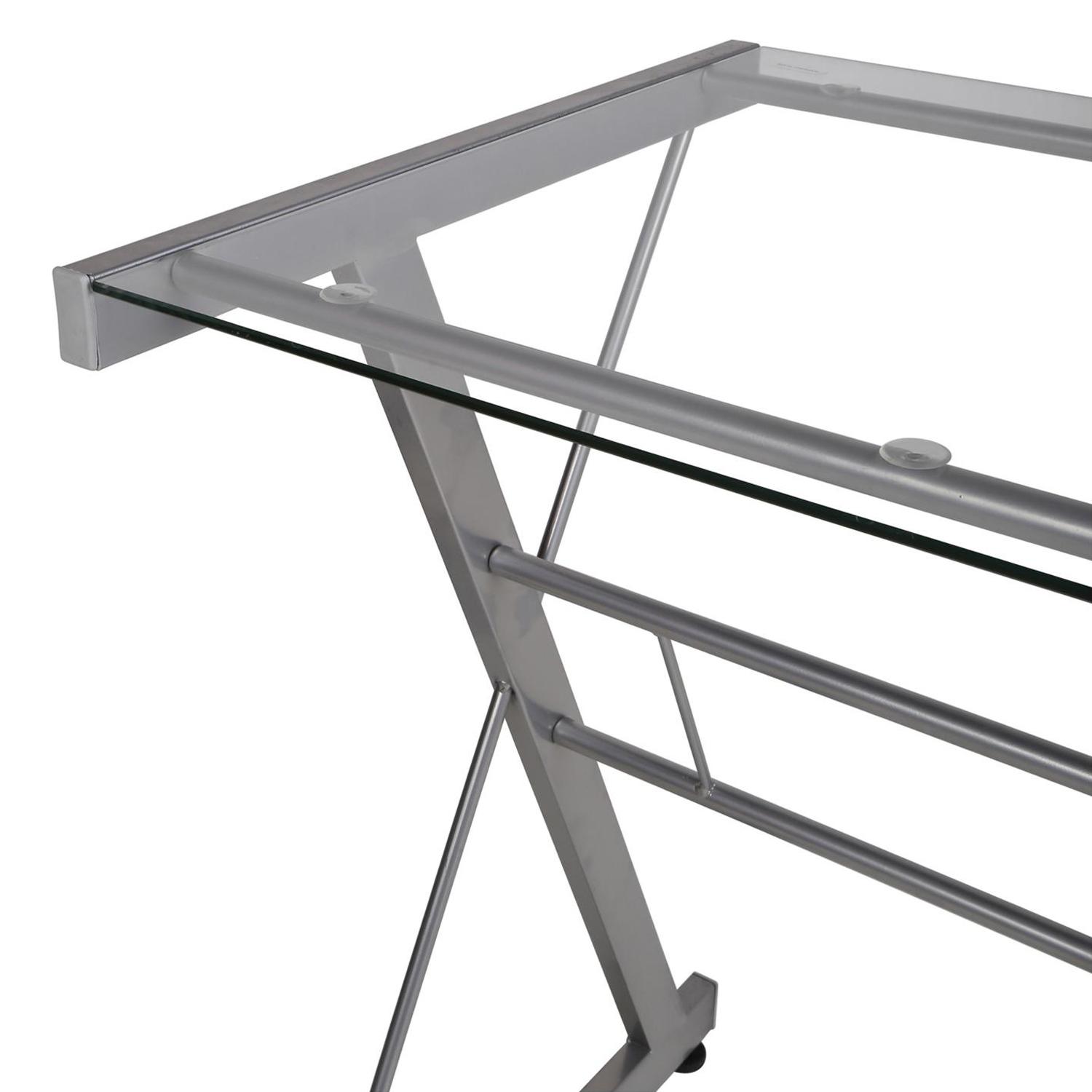 El Escritorio L Asenti de Just Home Collection es la solución perfecta para quienes buscan un espacio de trabajo moderno y funcional. Su diseño en forma de L te permite aprovechar al máximo el espacio, mientras que su cubierta de vidrio transparente le da un toque de elegancia a tu oficina o estudio. Con su estructura de metal resistente, este escritorio te ofrece la estabilidad y firmeza que necesitas para trabajar con comodidad.
