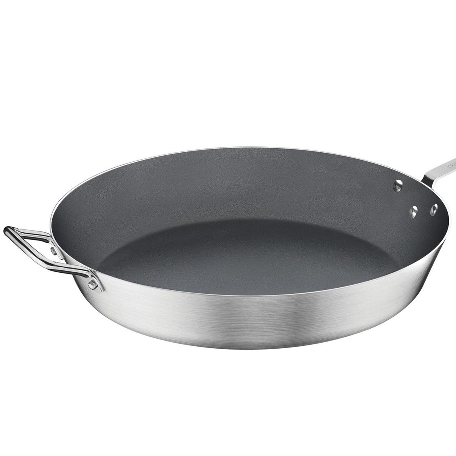 Esta sartén Tramontina, modelo 20895038, es ideal para cocinar grandes porciones de comida. Su material de aluminio proporciona una distribución uniforme del calor, mientras que su recubrimiento antiadherente evita que los alimentos se peguen. Es una sartén de granel, perfecta para uso profesional o para familias numerosas. Cuenta con un mango ergonómico de baquelita negra para un agarre cómodo y seguro. Su diseño es compatible con lavavajillas, facilitando su limpieza.