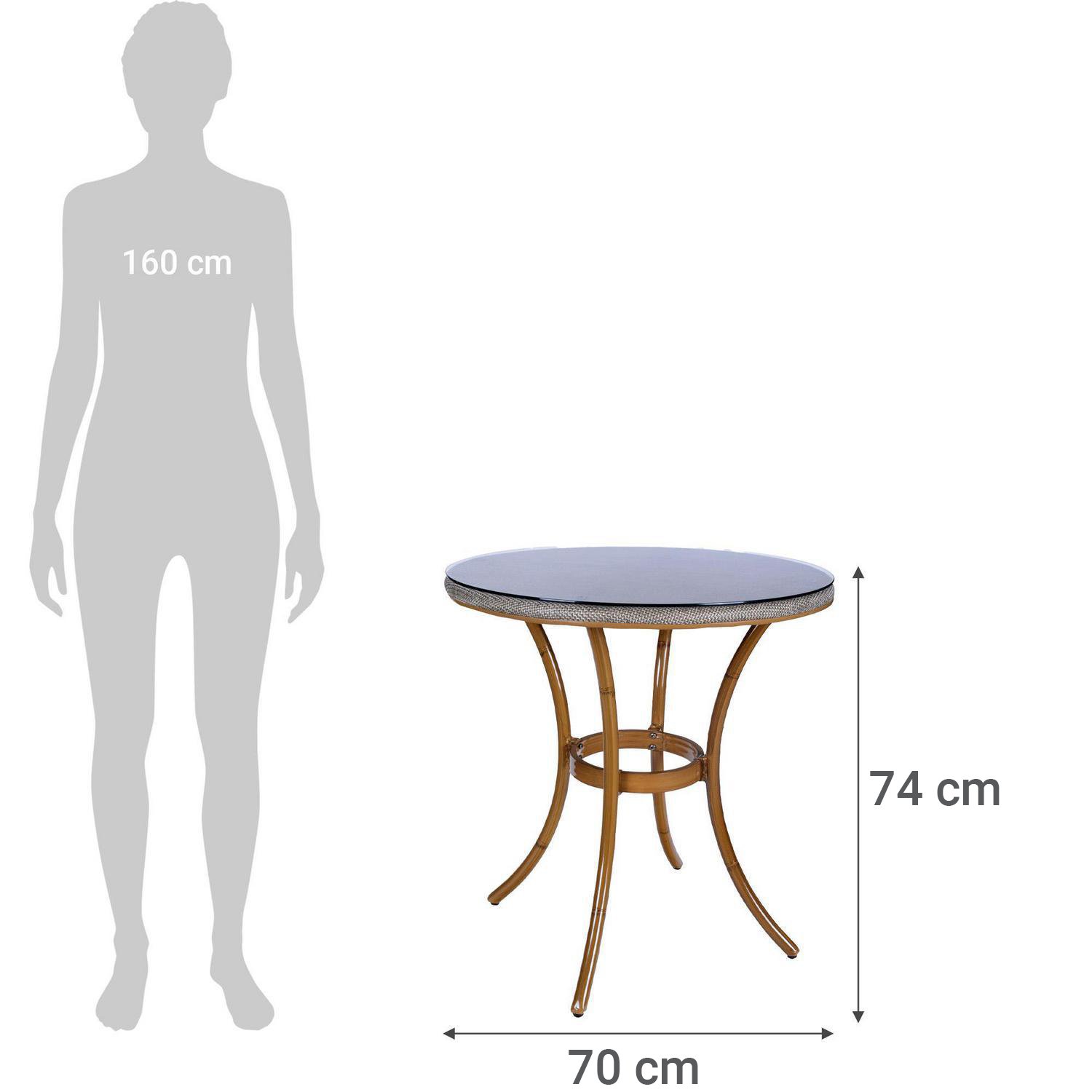 La Mesa Look Bambú tiene un diámetro de 70 cm, un ancho de 73 cm y una altura de 74 cm, lo que la hace ideal para espacios pequeños. Su estilo Boho Chic le dará un toque único a tu terraza. Además, su material de aluminio y textileno la hacen resistente y duradera, para que puedas disfrutarla por muchos años. La mesa se entrega desarmada, pero su armado es sencillo y rápido.