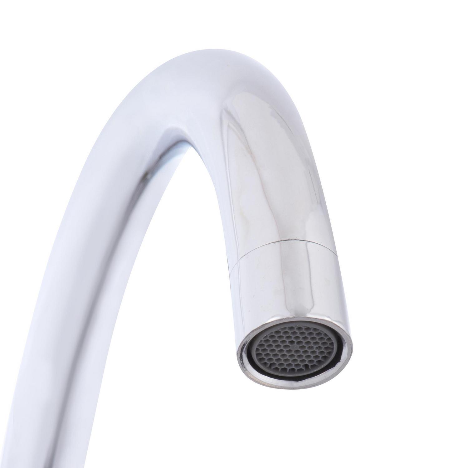 Dale un toque de elegancia y funcionalidad a tu cocina con la Combinación para lavaplatos cromada Fas. Su diseño clásico y cuello alto te brindarán el espacio que necesitas para lavar tus utensilios con comodidad. Fabricada en acero inoxidable con un acabado brillante, esta grifería es fácil de limpiar y mantendrá su brillo por años. Con dos manillas separadas para regular la temperatura del agua, obtendrás la temperatura perfecta sin esfuerzo. ¡Renueva tu cocina con estilo y eficiencia!